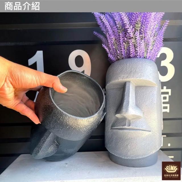 PiNYU 品柚生活傢飾館大號摩艾花瓶(復活島摩艾石像辦公室小物 石人像療癒花園佈置多肉花盆)