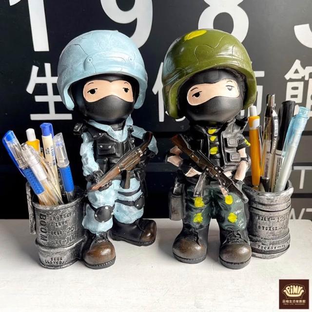 PiNYU 品柚生活傢飾館軍人筆筒(士兵軍人筆筒樹脂桌面筆筒收納多功能擺件擺飾)