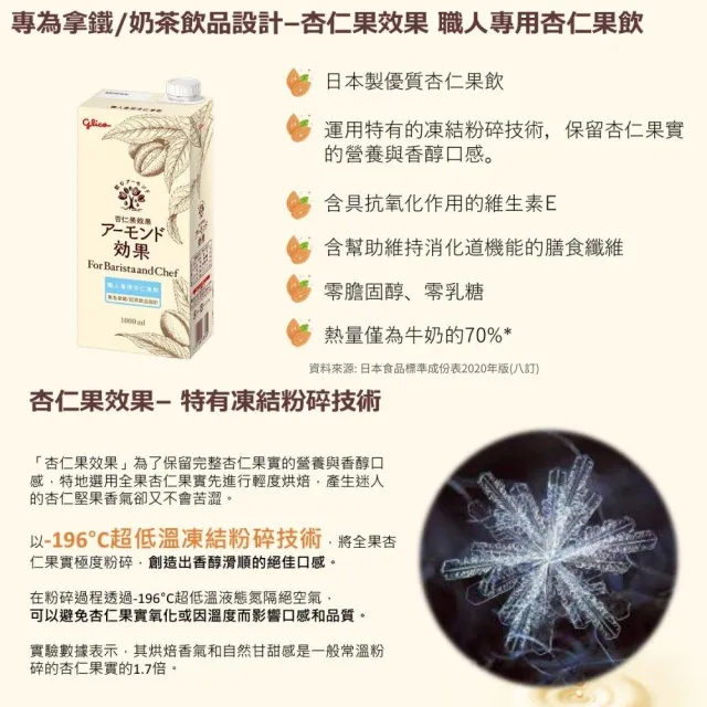 Glico 格力高職人專用杏仁果飲1L 7-11取貨限定4瓶(植物奶、杏仁奶、咖啡師杏仁果飲、格力高)