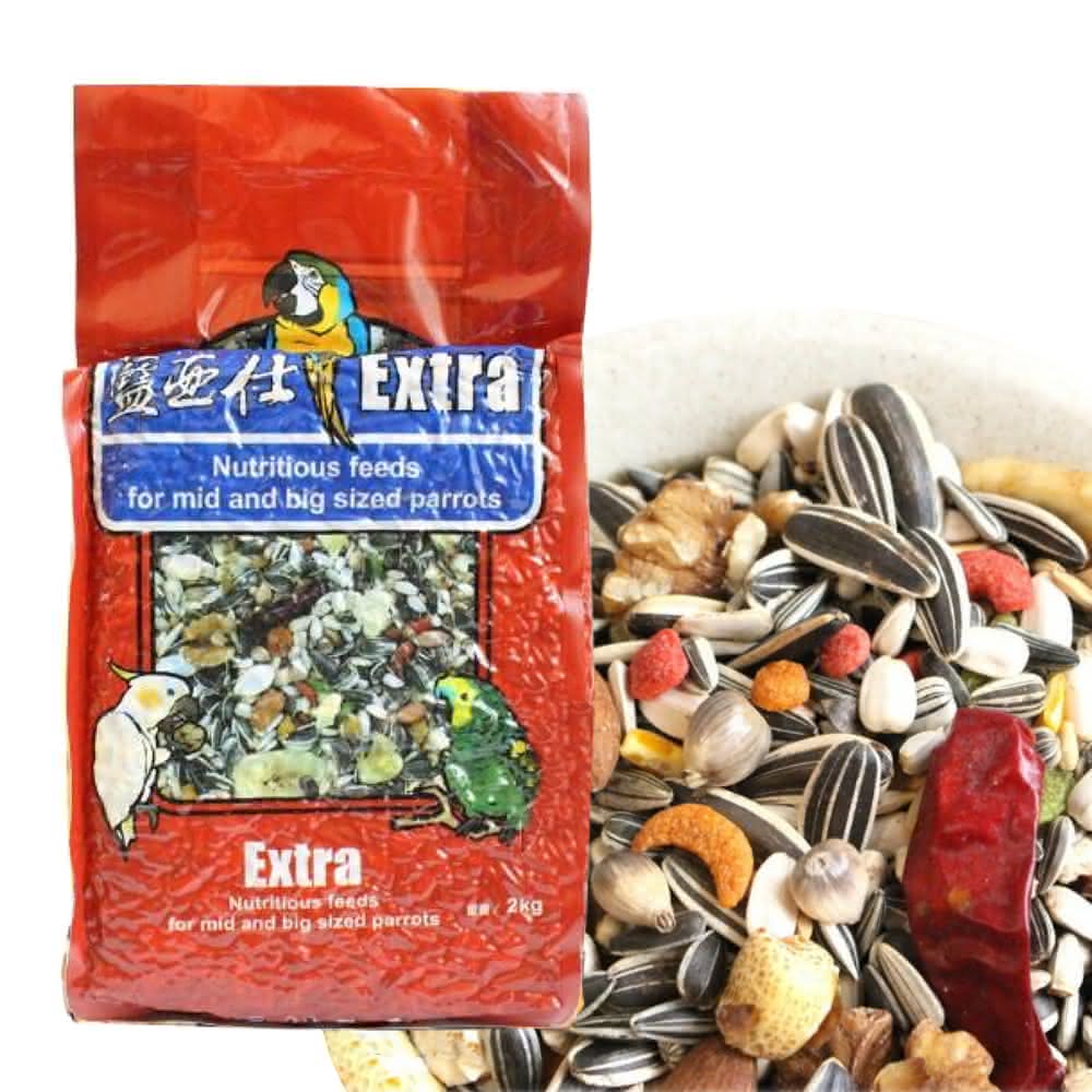 Extra 藍亞仕中大型有殼一般日糧/2公斤(極佳嗜口性 波力鸚鵡玩具生活館)