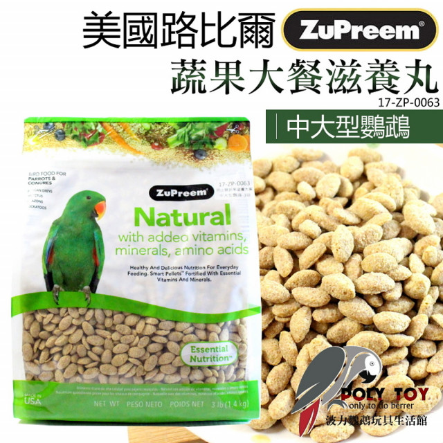 Zupreem 美國路比爾中大型鸚鵡滋養丸/原裝3磅(蔬果滋養大餐 波力鸚鵡玩具生活館)