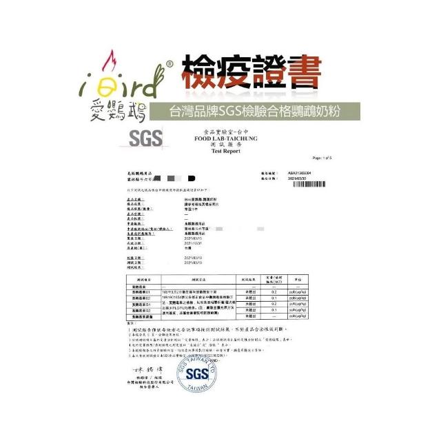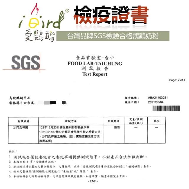 台灣品牌SGS檢驗合格鸚鵡奶粉