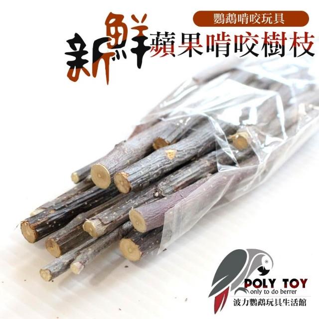 新鮮蘋果啃咬樹枝 鸚鵡啃咬玩具 木質玩具 波力鸚鵡玩具生活館
