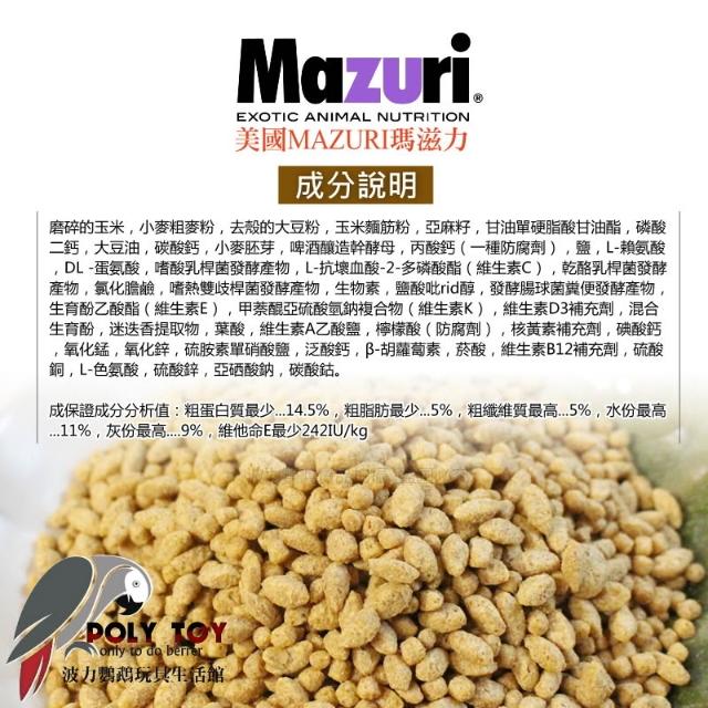 美國MAZURI瑪滋力 1KG 原裝中顆粒 中小型鸚鵡/中型鸚鵡 滋養丸 精緻飼料 波力鸚鵡玩具生活館