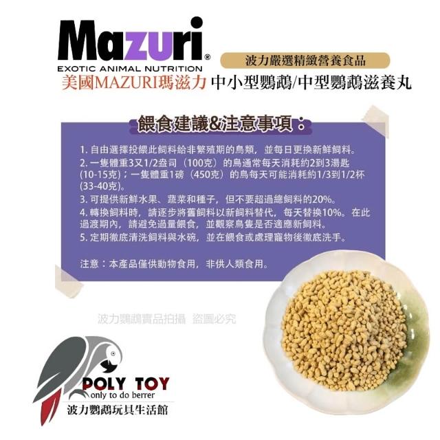 美國MAZURI瑪滋力 1KG 原裝中顆粒 中小型鸚鵡/中型鸚鵡 滋養丸 精緻飼料 波力鸚鵡玩具生活館