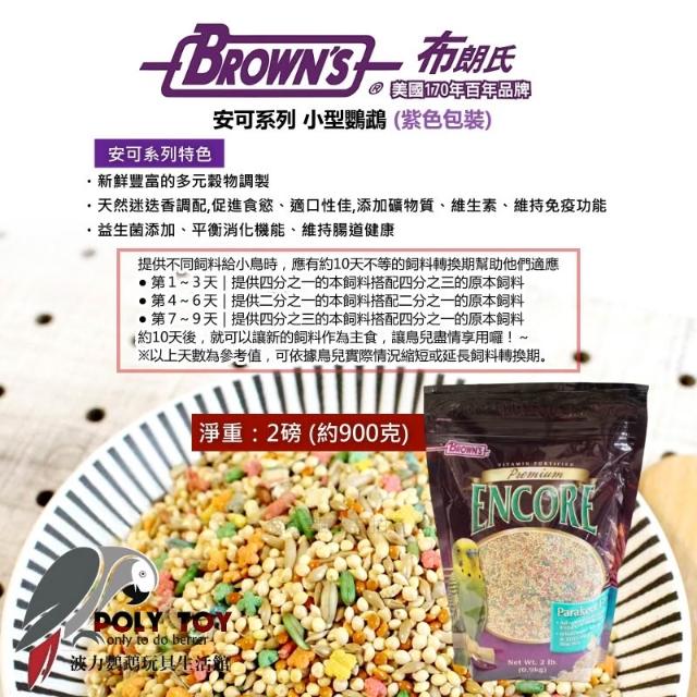 美國布朗氏 安可系列(紫色包裝) 小型鸚鵡 原裝進口 日常主食飼料 鸚鵡飼料 波力鸚鵡玩具生活館