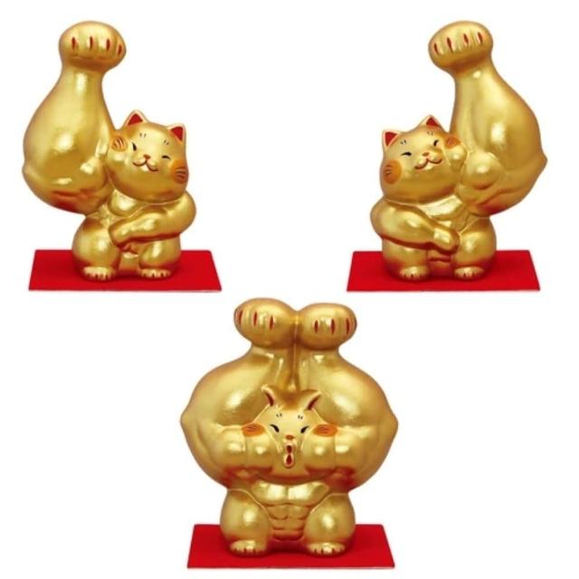 日本 龍虎堂 大力剛腕招財貓 金色款 大 大力招財 招福(招福干支 開運小物 交換禮物 居家賀禮)