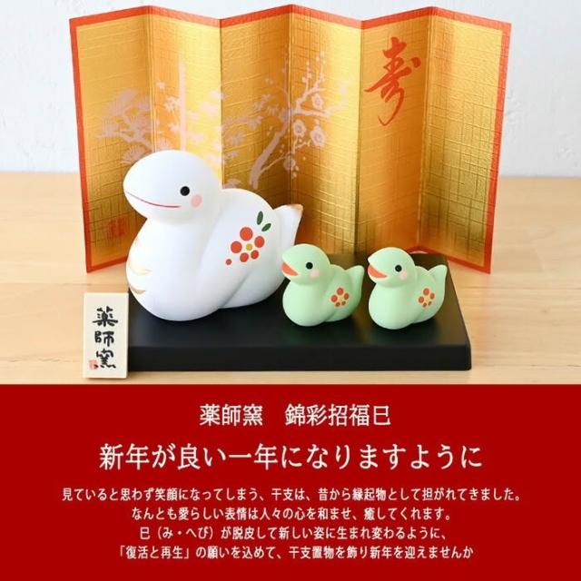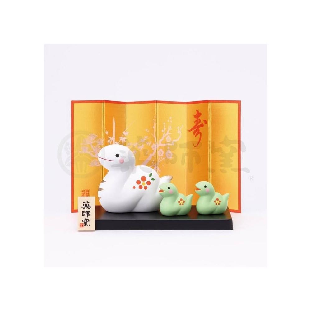 日本藥師窯藥師窯 己年 蛇 錦彩招福蛇(紅梅・親子) 除舊布新 生肖擺飾