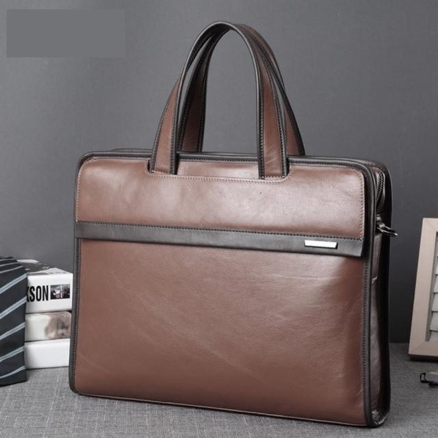 米蘭精品現貨+預購 真皮公事包手提包真皮革手拿包側背包-商務大容量牛皮純色男包包2色74cv20