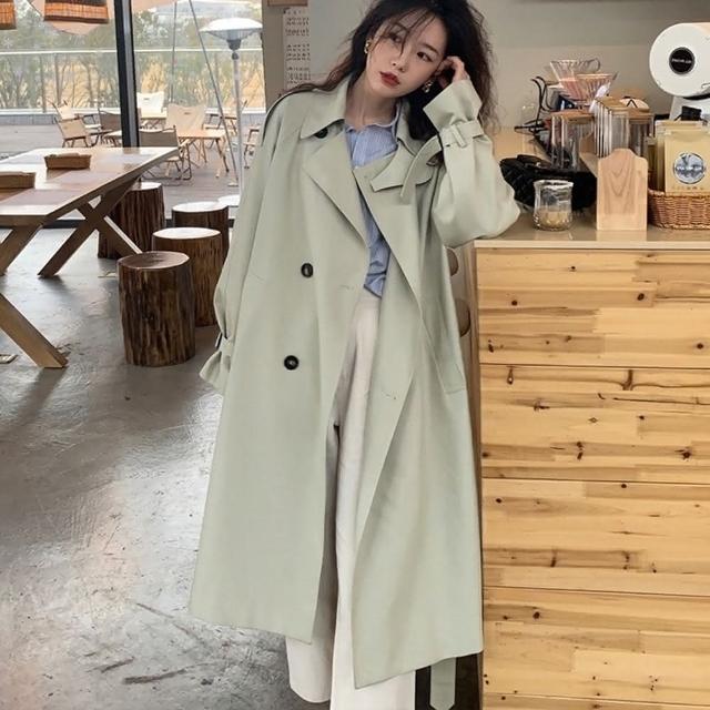 米蘭精品現貨+預購 風衣外套長版大衣英倫風氣質純色雙排扣女外套2色74dk1