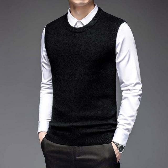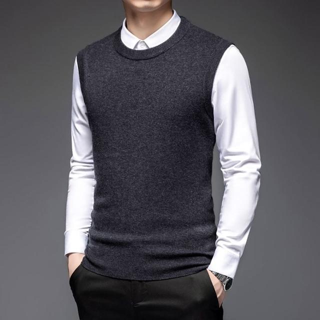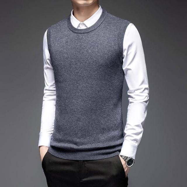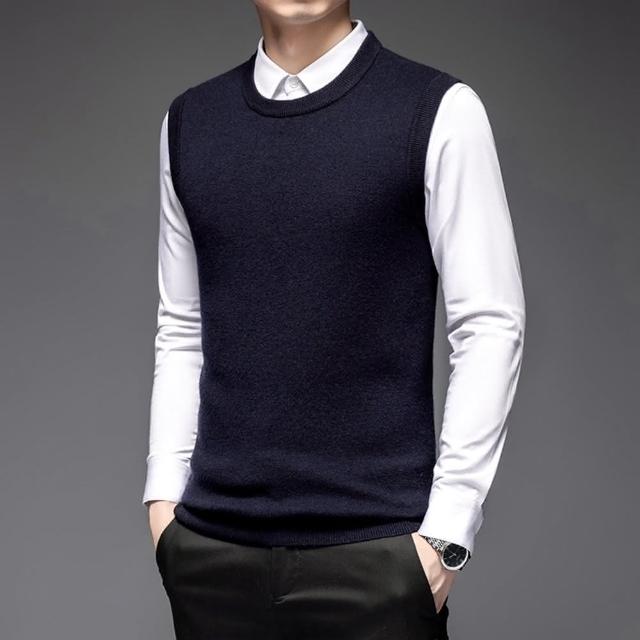 米蘭精品現貨+預購 100%羊毛背心針織衫上衣圓領素面經典純色防寒保暖男背心外套5色74do19