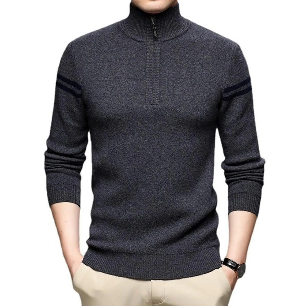 米蘭精品現貨出清 100%羊毛毛衣針織衫-條紋半高領加厚修身防寒保暖男毛衣4色74dp36