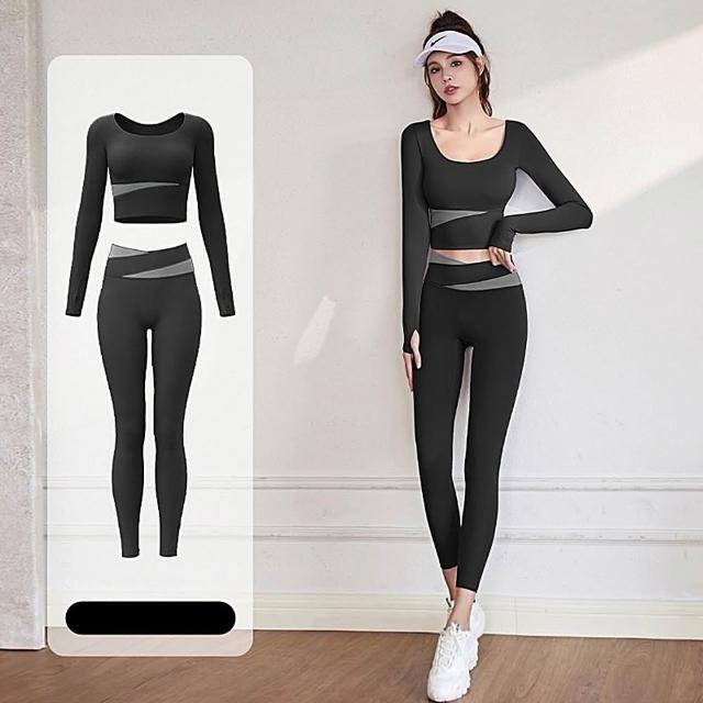 米蘭精品現貨+預購 瑜珈服套裝長袖運動服運動上衣休閒女裝瑜伽服-速乾撞色高腰長褲女休閒服6色74ek9