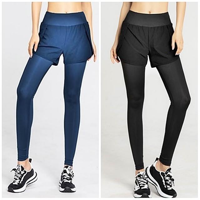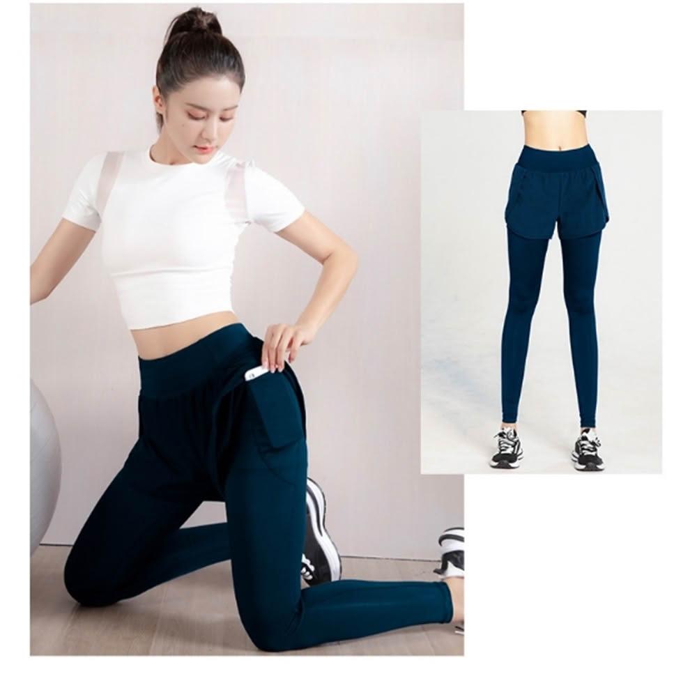 米蘭精品極速出貨 高腰瑜珈褲運動長褲運動褲緊身褲內搭褲瑜伽褲-速乾假兩件口袋高提臀健身女褲子3色74el17
