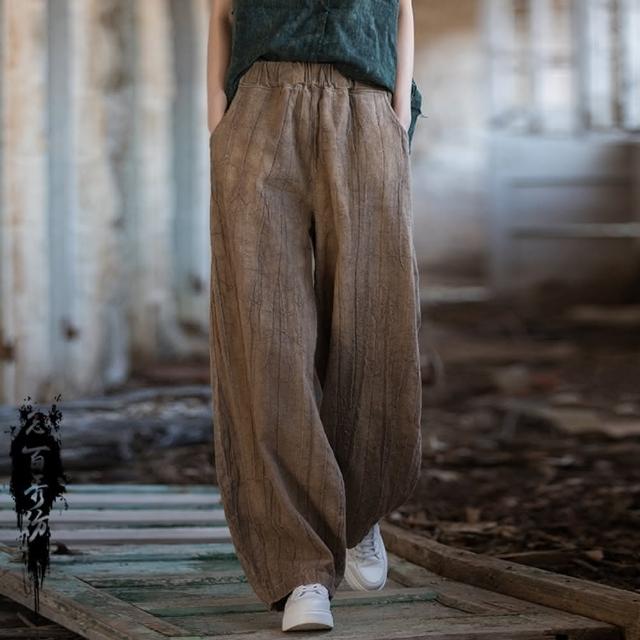 米蘭精品現貨+預購 休閒褲棉麻長褲休閒寬鬆文藝百搭女褲子2色74eo6