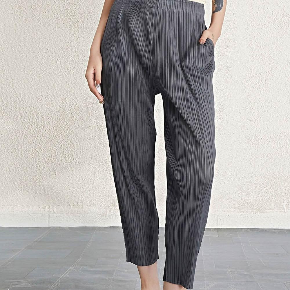 米蘭精品現貨+預購 三宅風皺褶衣服褶皺摺褲寬鬆闊腿褲寬褲摺衣彈力長褲顯瘦折衣大碼(九分女褲子5色74fh16)