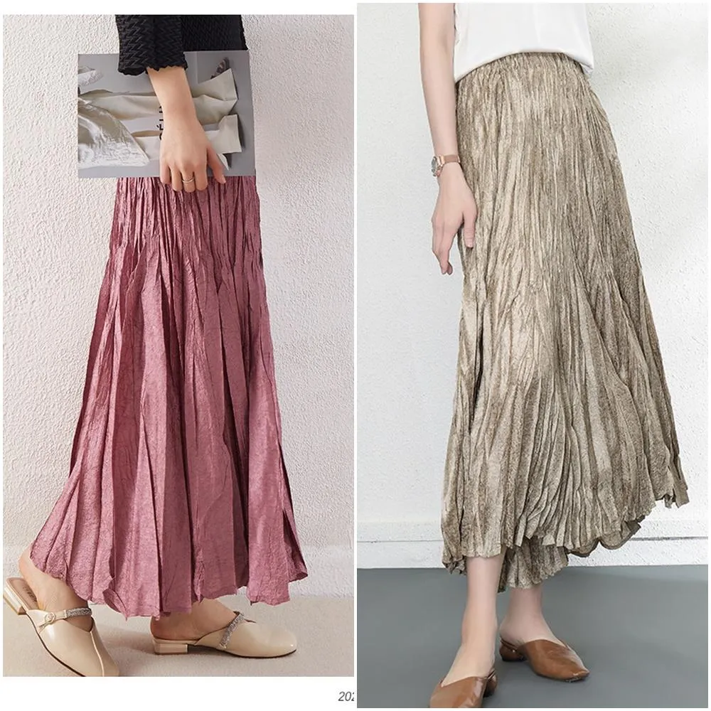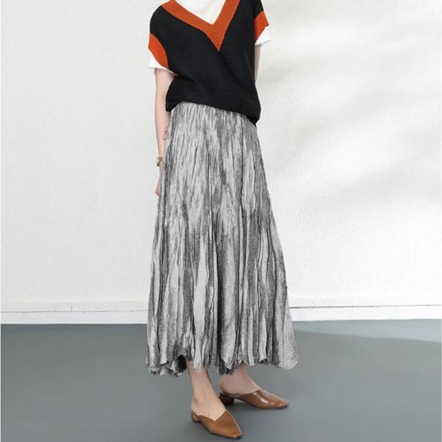米蘭精品現貨+預購 三宅風皺褶衣服百褶裙褶皺半身裙摺衣彈力長裙顯瘦折衣大碼(高腰百搭A字裙4色74fi1)
