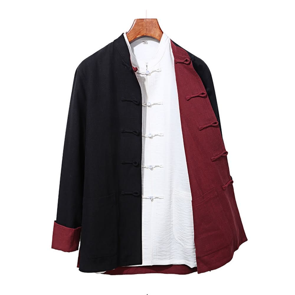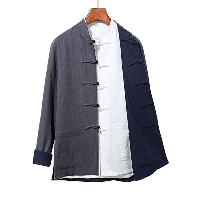 米蘭精品現貨+預購 唐裝上衣長袖漢服-中國風雙面穿寬鬆盤扣薄款男外套2色74fo31