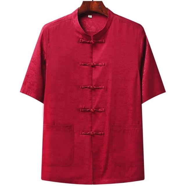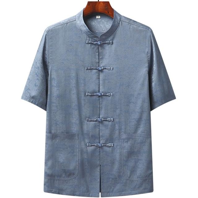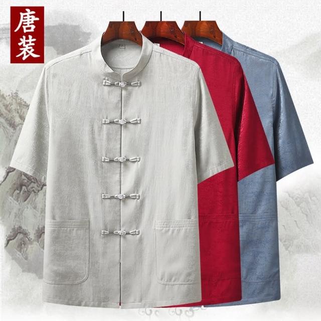 米蘭精品現貨+預購 唐裝上衣短袖漢服-中國風提花寬鬆薄款中老年男外套3色74fo24