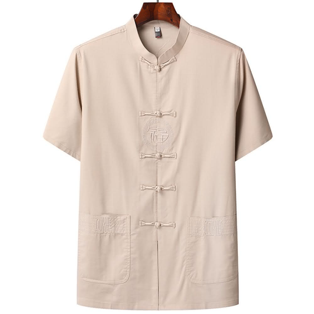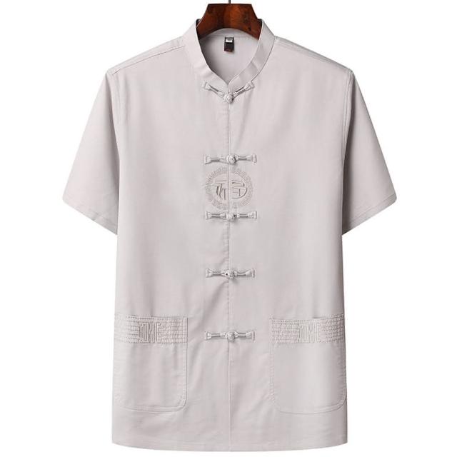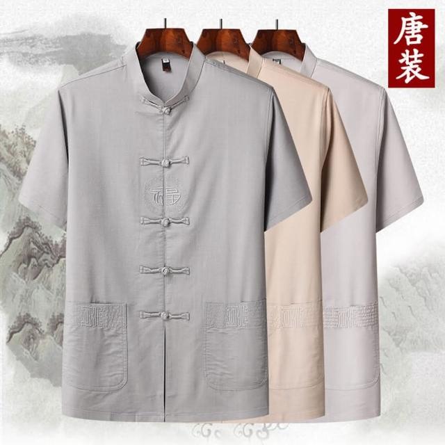 米蘭精品現貨+預購 唐裝上衣短袖漢服-中國風薄款寬鬆刺繡天絲男外套3色74fo6
