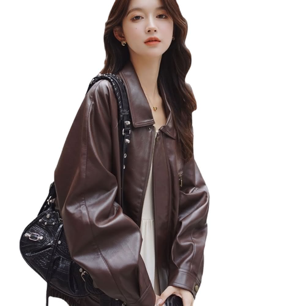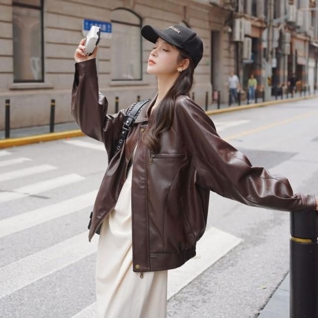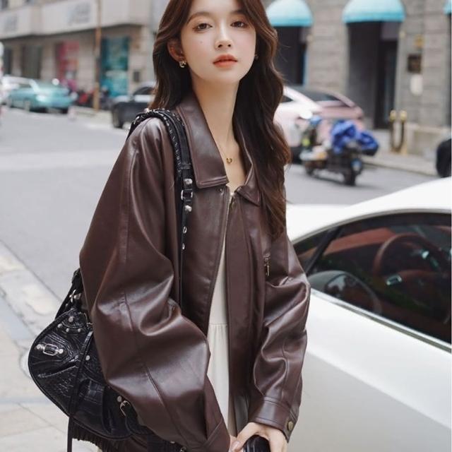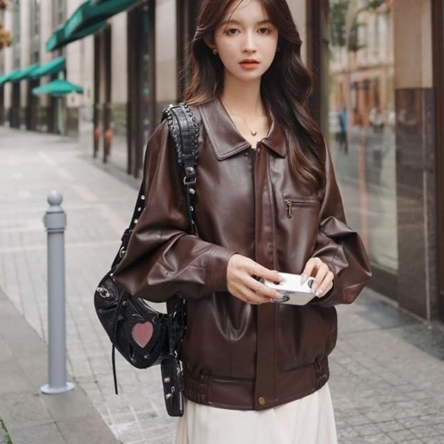 米蘭精品現貨+預購 皮衣外套休閒夾克美式寬鬆顯瘦PU皮女外套74gt26