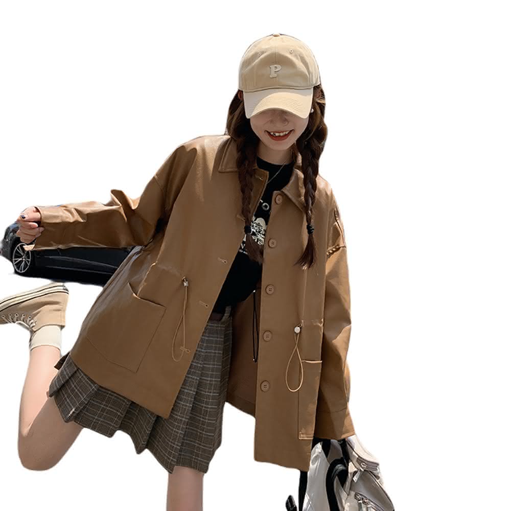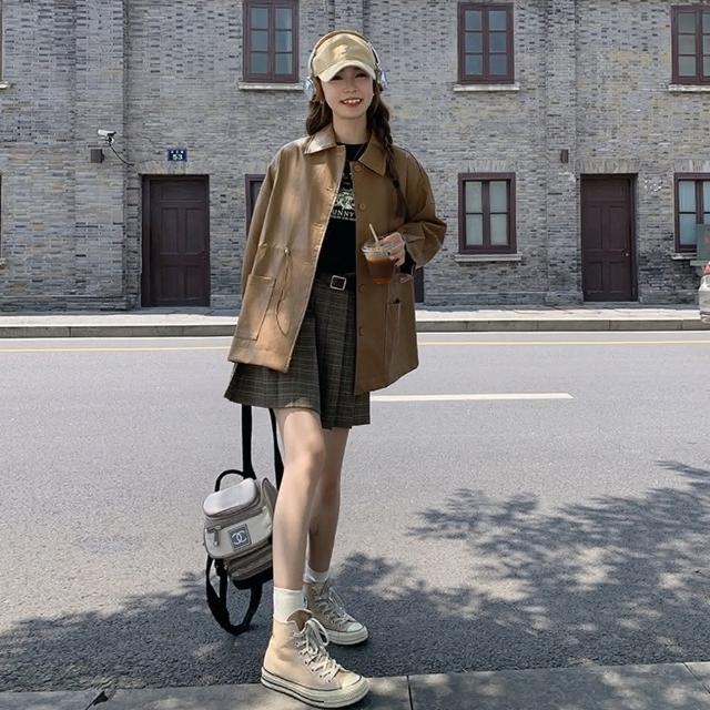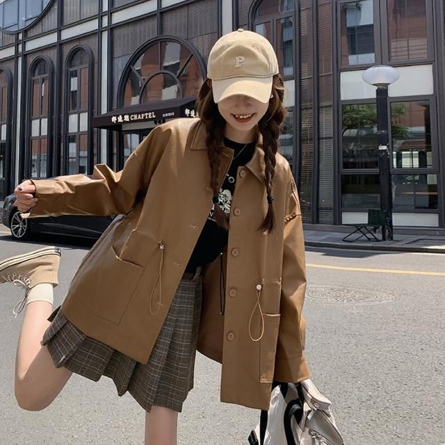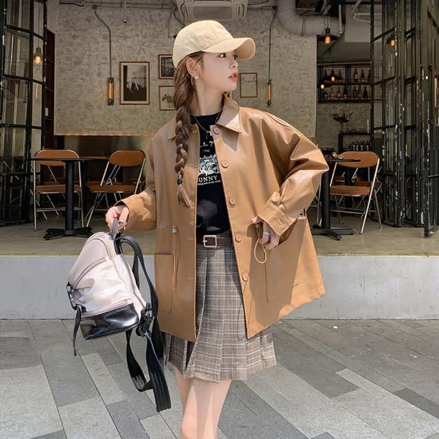 米蘭精品現貨+預購 皮衣外套休閒夾克復古寬鬆休閒PU皮女外套74gt25