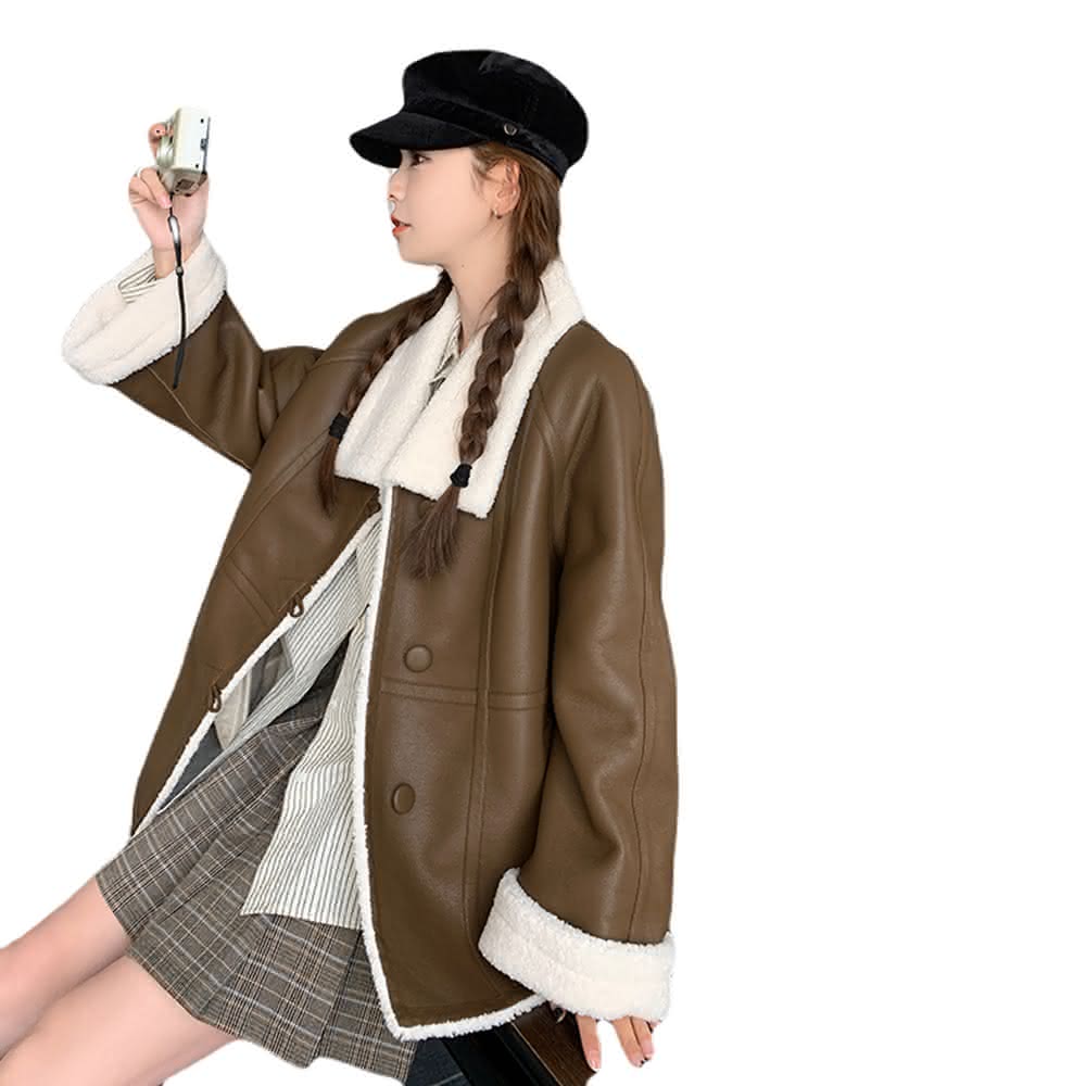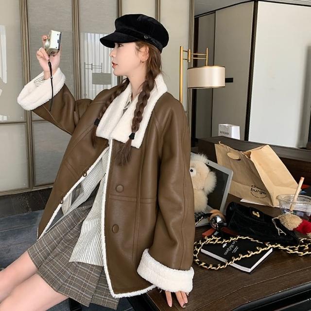 米蘭精品現貨+預購 皮衣外套休閒夾克仿羊羔毛PU皮保暖女外套74gt23