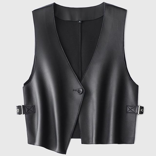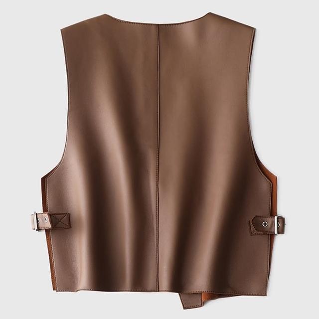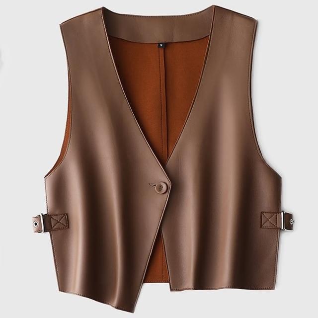 米蘭精品現貨+預購 真皮皮衣羊皮夾克不規則無袖復古風女外套2色74go1