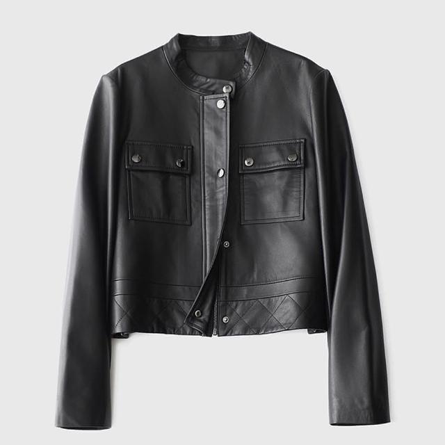 米蘭精品現貨+預購 真皮皮衣羊皮夾克秋季直筒型機車風女外套74go7