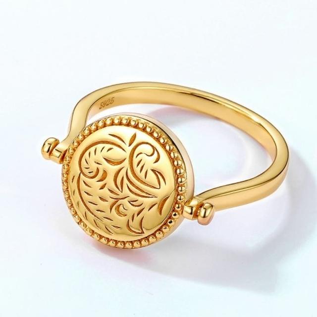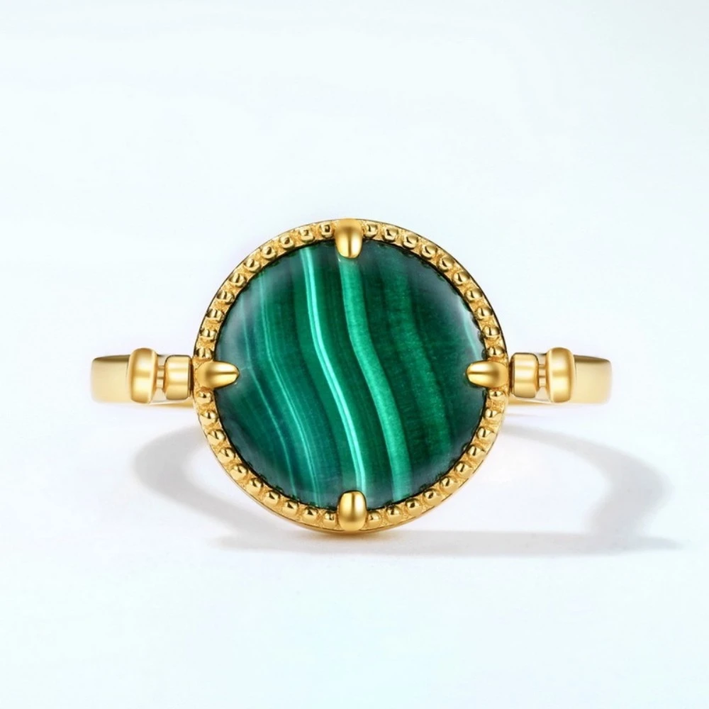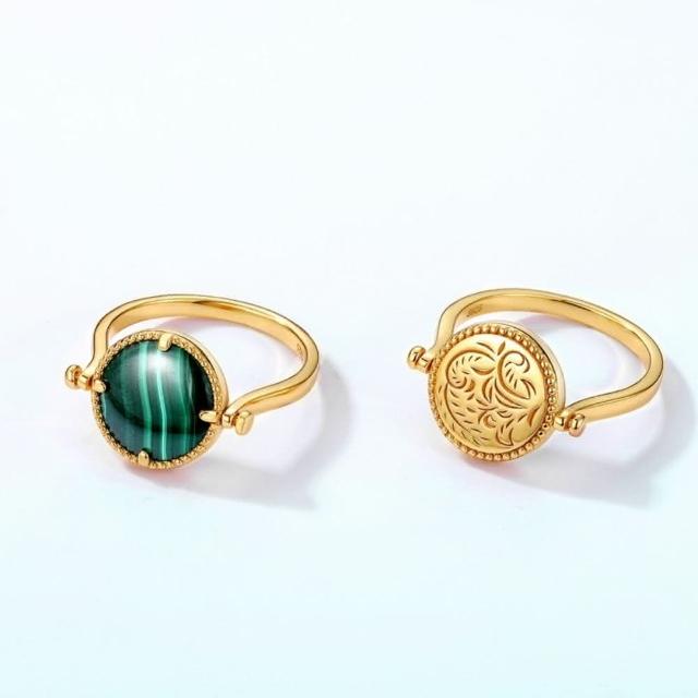 米蘭精品現貨+預購 孔雀石戒指925純銀指環簡約金色圓牌雙面孔雀石女飾品聖誕節交換禮物74gf16