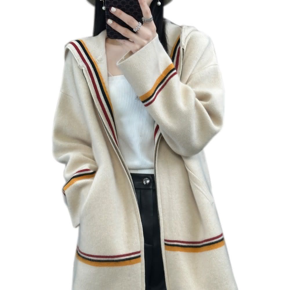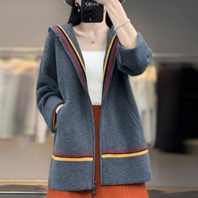米蘭精品現貨+預購 100%羊毛 羊毛衫針織外套-保暖三色條紋連帽長袖女外套2色74hk114