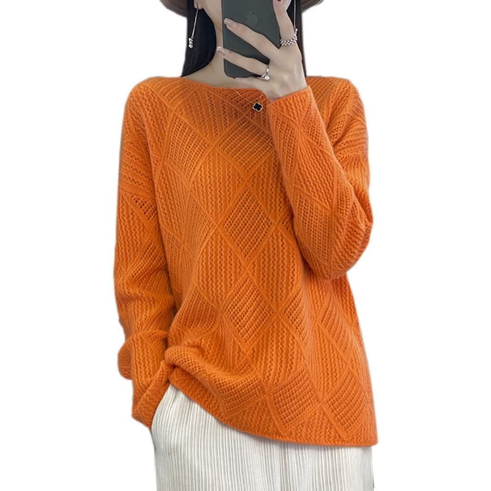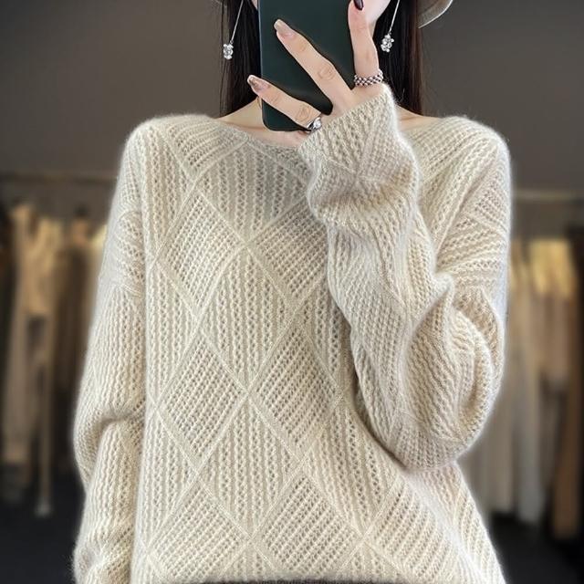 米蘭精品現貨+預購 100%羊毛 羊毛衫針織毛衣-保暖鏤空菱形紋長袖女上衣4色74hk112