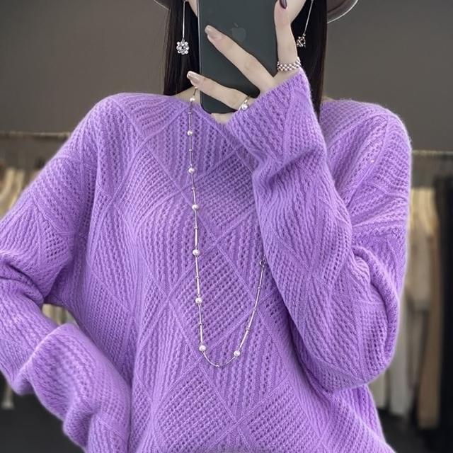 米蘭精品現貨+預購 100%羊毛 羊毛衫針織毛衣-保暖鏤空菱形紋長袖女上衣4色74hk112