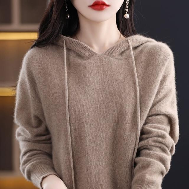 米蘭精品現貨+預購 100%羊毛 羊毛衫針織毛衣-保暖針織可調抽繩連帽女上衣5色74hk76