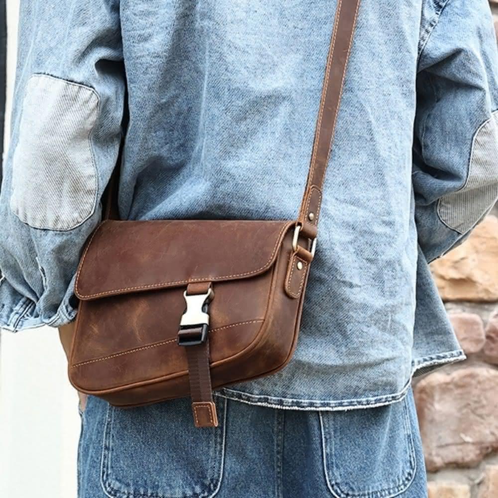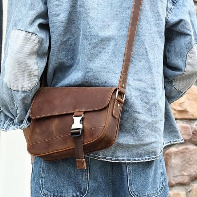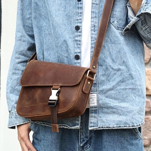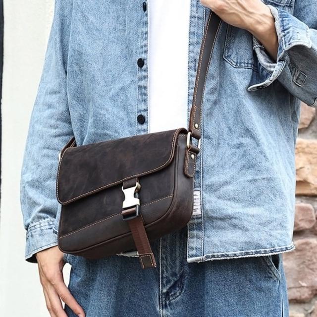 米蘭精品現貨+預購 真牛皮側背包真皮革單肩背包托特包手提包隨身男包包-斜背瘋馬牛皮休閒2色74gv26