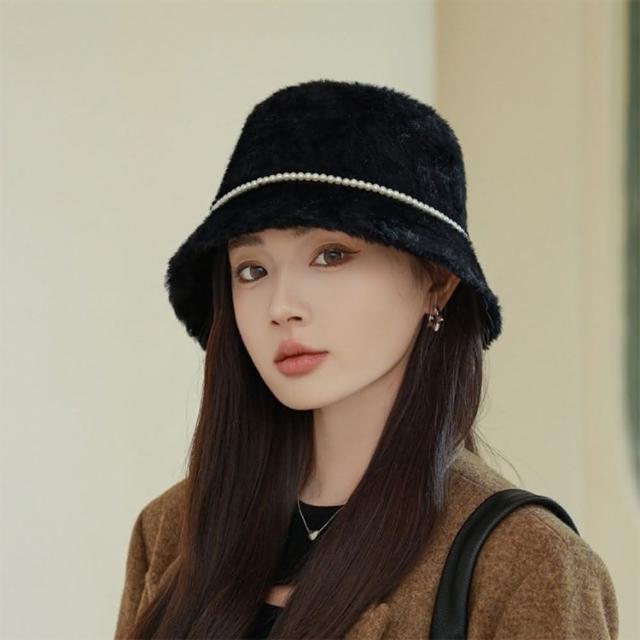 米蘭精品現貨+預購 毛帽漁夫帽-小香風珍珠貂絨漁夫帽女帽子6色74ig3
