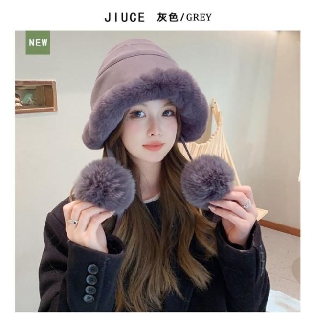 米蘭精品現貨+預購 毛帽漁夫帽-毛絨可愛毛球保暖護耳女帽子5色74ig11