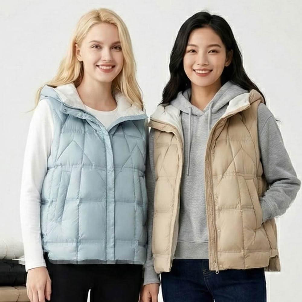 米蘭精品極速出貨 真羽絨90%鴨絨羽絨背心羽絨衣夾克-保暖百搭立領連帽女外套4色74ia58