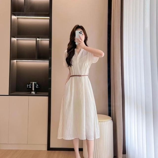 米蘭精品現貨 限搶! 連身裙短袖洋裝-文藝亞麻高級感襯衫女裙子白色74is57