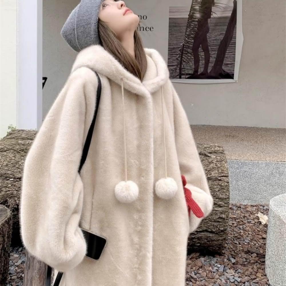 米蘭精品現貨+預購 皮草外套仿水貂毛大衣-連帽加厚女巫長款女外套5色74iq30