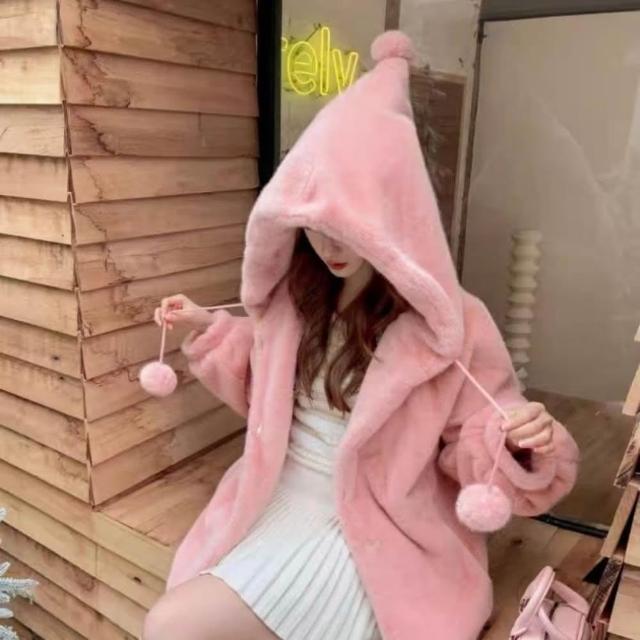 米蘭精品現貨+預購 皮草外套仿水貂毛大衣-連帽加厚女巫長款女外套5色74iq30