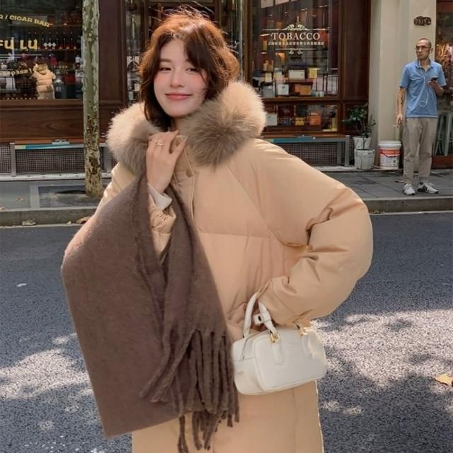 米蘭精品現貨+預購 真羽絨95%鴨絨羽絨外套羽絨衣夾克-保暖狐狸毛領加厚中長款女外套3色74iq45