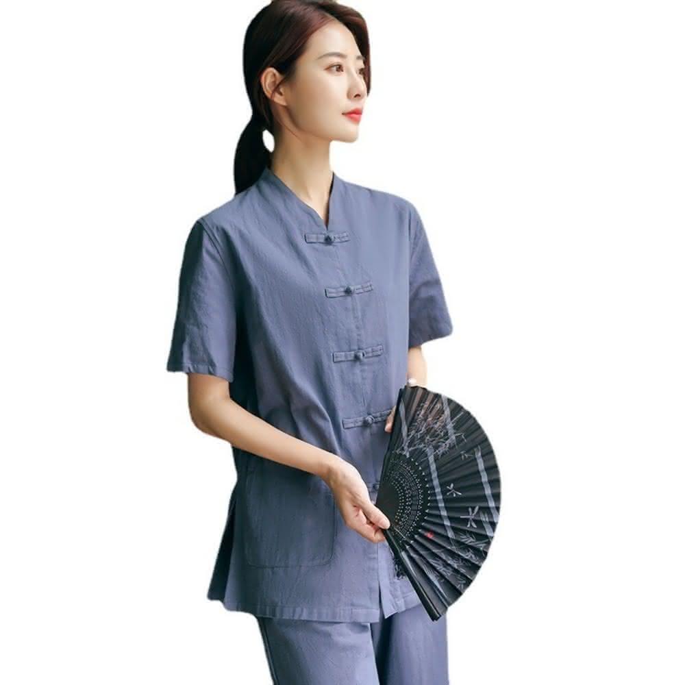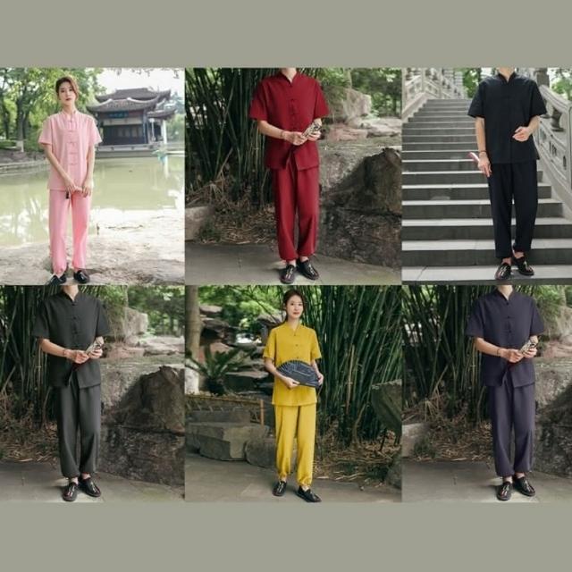 米蘭精品現貨+預購 唐裝中山装套裝-中國風太極功夫氣功茶禪短袖棉麻女套裝12色74jf3