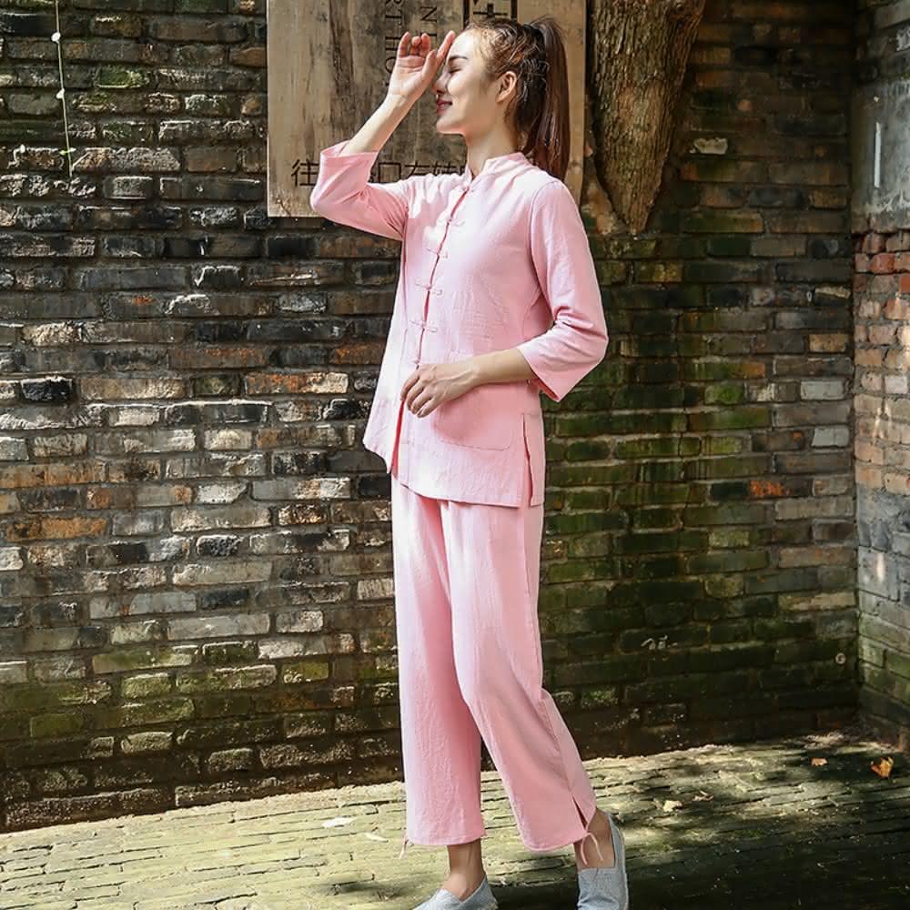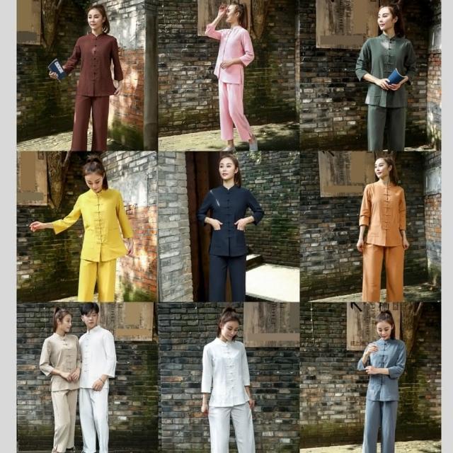 米蘭精品現貨+預購 唐裝中山装套裝-中國風太極功夫氣功茶禪立領棉麻女套裝10色74jf10