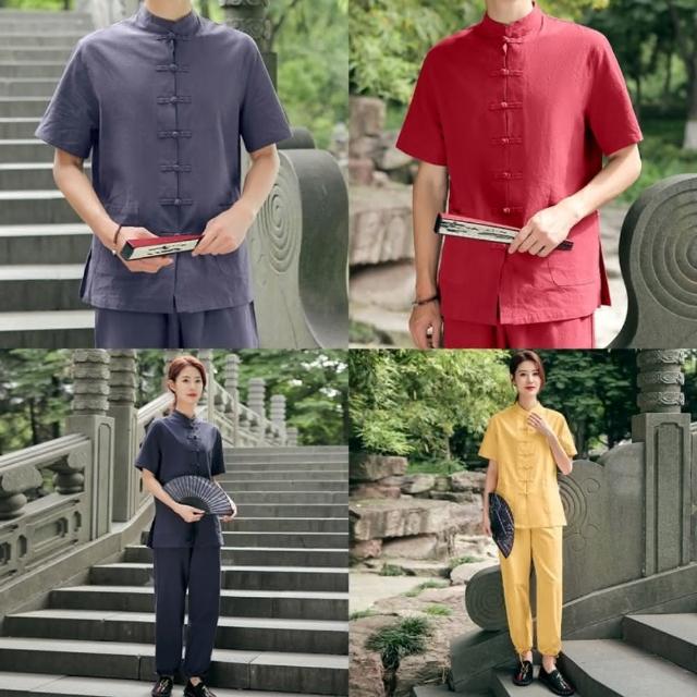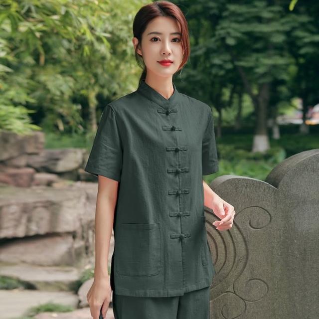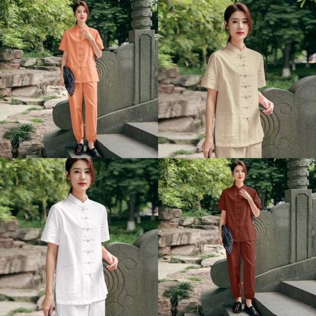 米蘭精品現貨+預購 唐裝中山装套裝-中國風太極功夫氣功茶禪短袖棉麻女套裝10色74jf17