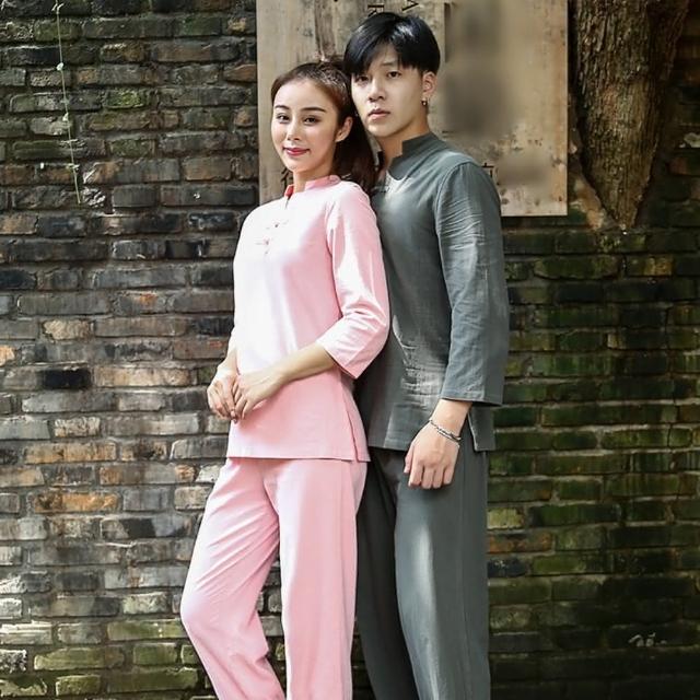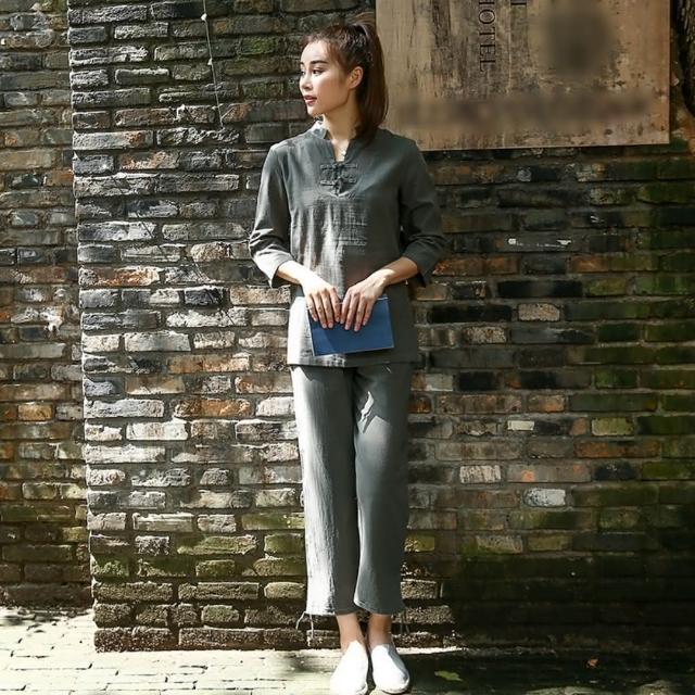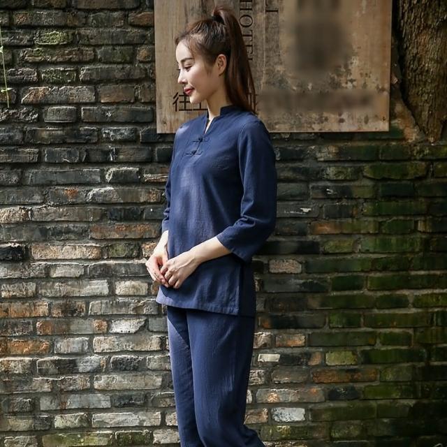 米蘭精品現貨+預購 唐裝中山装套裝-中國風太極功夫氣功茶禪七分袖棉麻女套裝6色74jf20