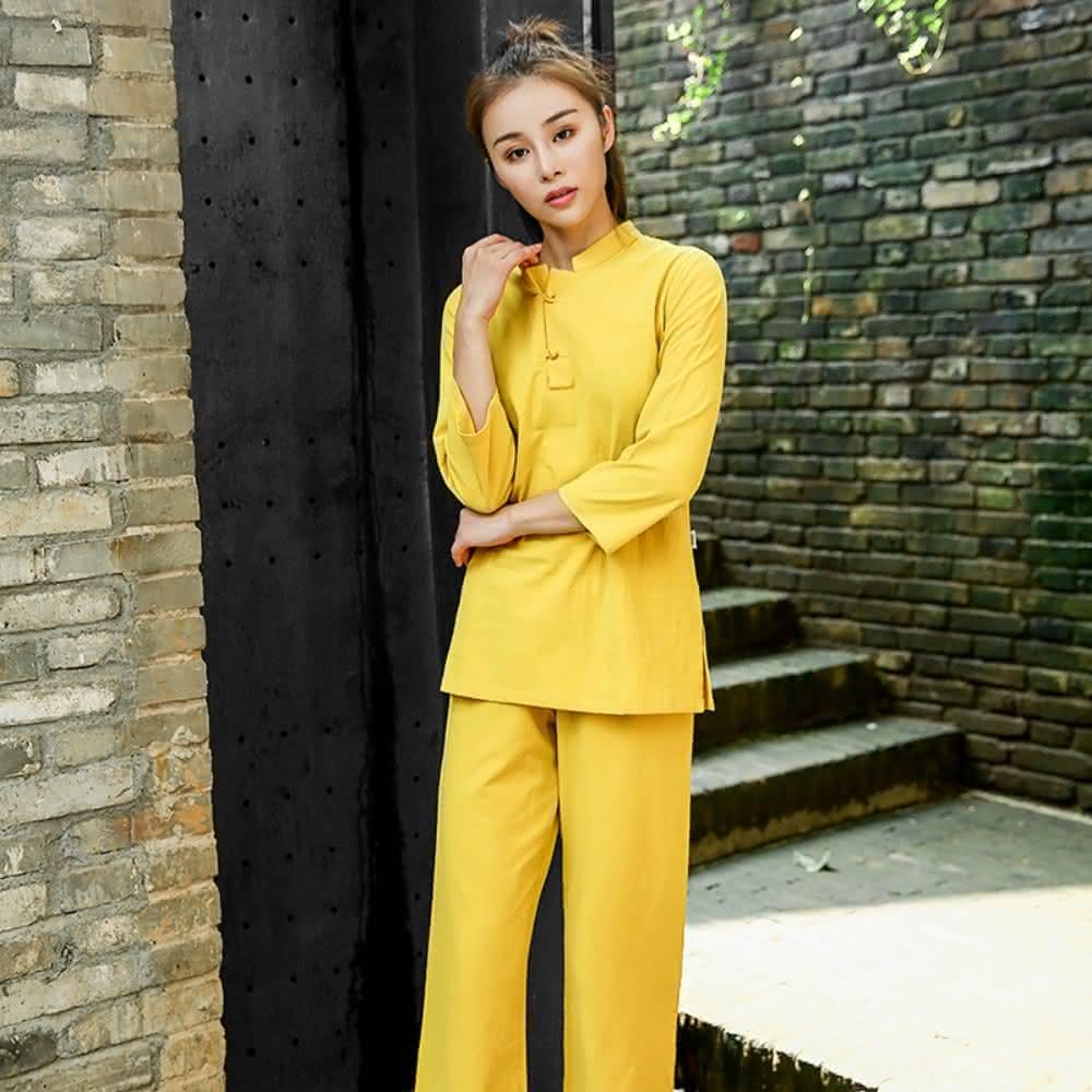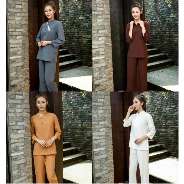 米蘭精品現貨+預購 唐裝中山装套裝-中國風太極功夫氣功茶禪七分袖棉麻女套裝10色74jf30