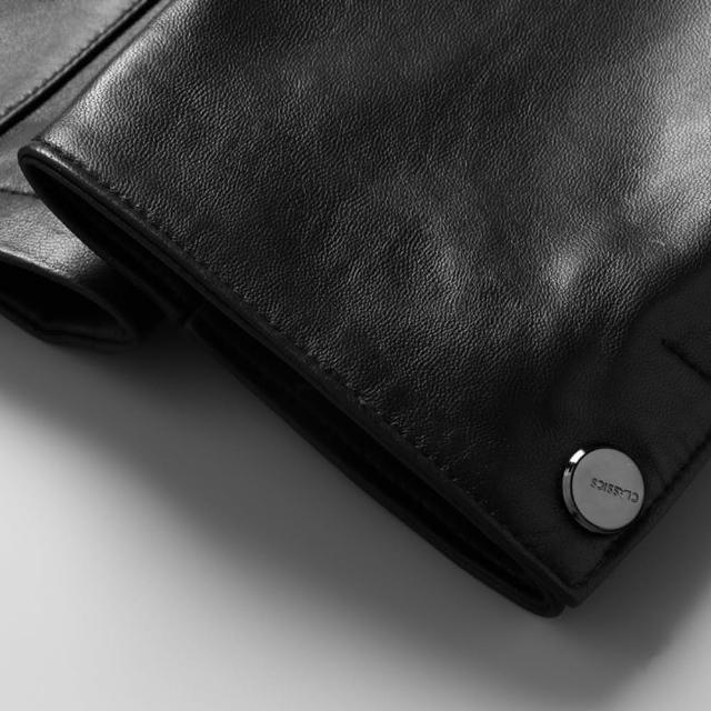 米蘭精品現貨+預購 真皮皮衣外套-綿羊皮翻領商務夾克簡約男外套黑色74ja35
