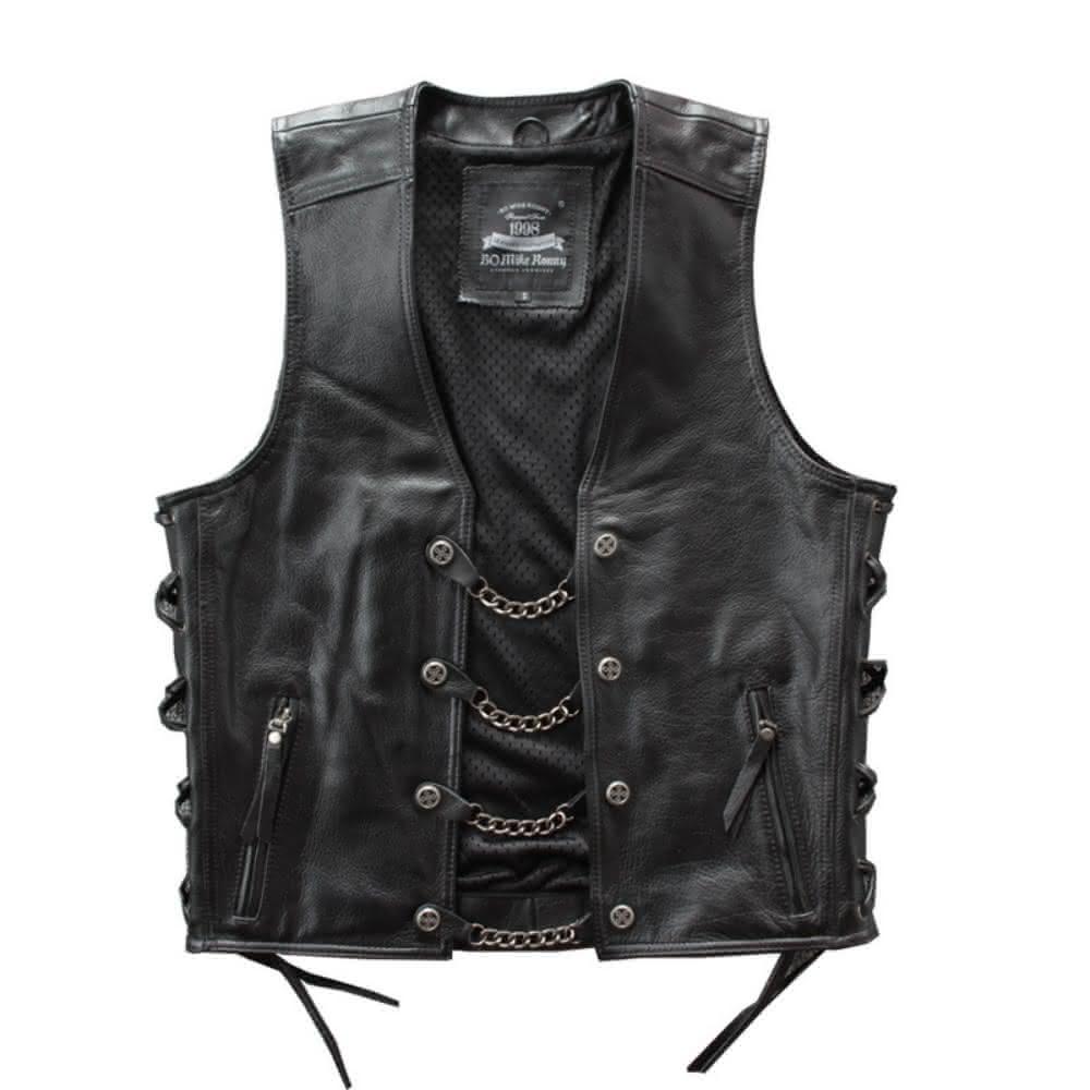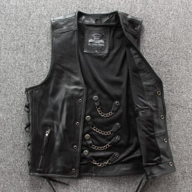 米蘭精品現貨+預購 真皮背心皮衣夾克-牛皮坎肩鋼鏈馬甲男外套74jo6