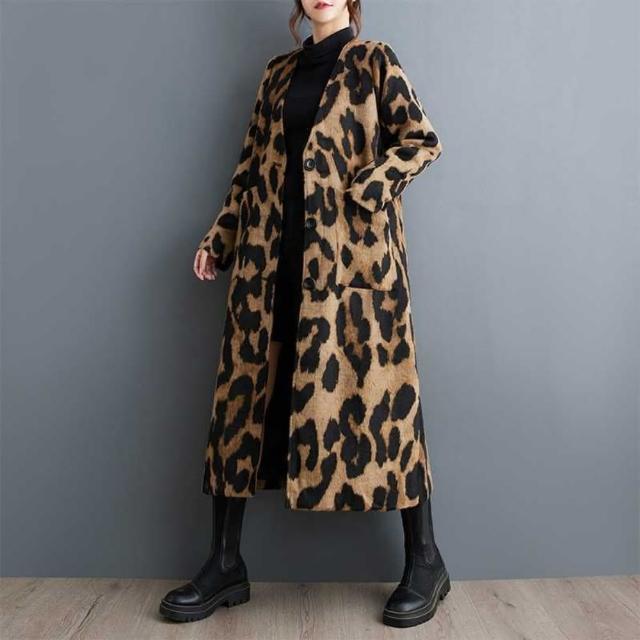 米蘭精品現貨+預購 風衣長版外套-復古豹紋中長雙層毛呢女外套豹紋色74jb40